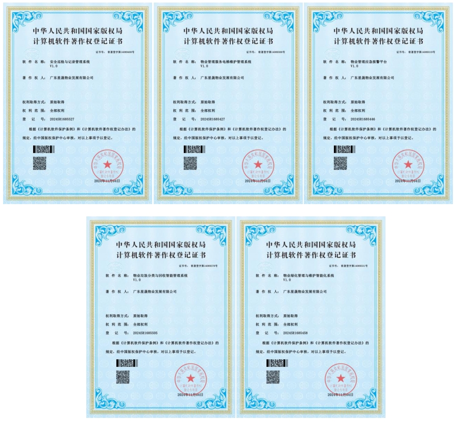 近日,汕尾投控下屬企業(yè)廣東星晟物業(yè)發(fā)展有限公司榮獲國(guó)家版權(quán)局頒發(fā)的6項(xiàng)物業(yè)管理類計(jì)算機(jī)軟件著作權(quán)登記證書(shū),包括“智能物業(yè)保潔一體化服務(wù)系統(tǒng)”“物業(yè)垃圾分類與回收智能管理系統(tǒng)”“物業(yè)綠化管理與維護(hù)智能化系統(tǒng)”“物業(yè)管理服務(wù)電梯維護(hù)管理系統(tǒng)”“物業(yè)管理應(yīng)急報(bào)警平臺(tái)”“安全巡檢與記錄管理系統(tǒng)”,連同此前獲得的國(guó)家專利局頒發(fā)的園林綠化管養(yǎng)類實(shí)用新型專利1項(xiàng),星晟物業(yè)公司累計(jì)獲得自有知識(shí)產(chǎn)權(quán)證書(shū)已達(dá)7項(xiàng)。 這充分體現(xiàn)了星晟物業(yè)在物業(yè)管理領(lǐng)域的創(chuàng)新實(shí)力,為推動(dòng)星晟物業(yè)高質(zhì)量發(fā)展奠定了堅(jiān)實(shí)基礎(chǔ)。展望未來(lái),星晟物業(yè)公司將緊緊圍繞市投控公司“5+1+N”業(yè)務(wù)板塊,充分利用平臺(tái)資源優(yōu)勢(shì),深入實(shí)施新型國(guó)企的發(fā)展戰(zhàn)略。始終堅(jiān)持“拓展市場(chǎng)、優(yōu)化服務(wù)、強(qiáng)化管理”的工作主線,以“新發(fā)展”“智取勝”為方向,不斷提升物業(yè)管理的專業(yè)水平和物業(yè)服務(wù)品質(zhì),助力汕尾物業(yè)管理行業(yè)高質(zhì)量發(fā)展。